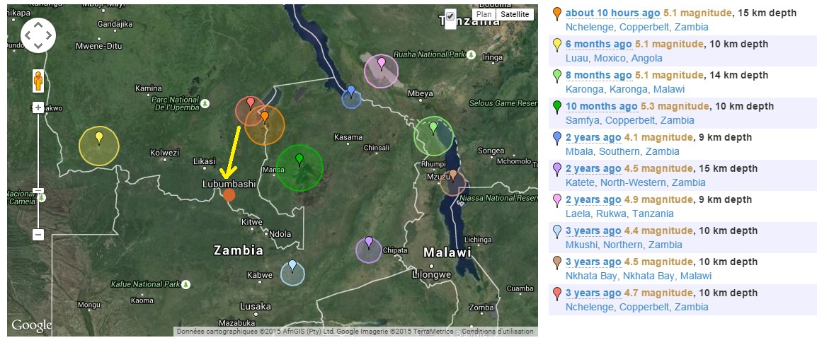 UN JOUR, UNE IMAGE – réveillé en pleine nuit par un tremblement de terre d’une magnitude de 5.1 au niveau de l’épicentre en Zambie situé à plus de 600 kms de Lubumbashi …ça a pas mal bougé, j’ai pu compter 19 longues secondes où vitres et murs bougeaient alors que la terre grondait…les chimps sont restés calmes, seuls ceux de la Nurserie semblaient inquiets et ont mis du temps à se rendormir…