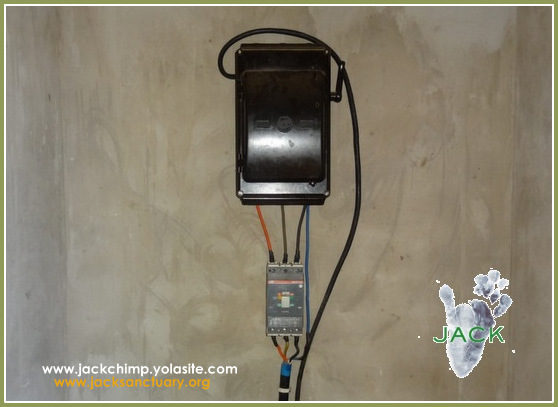 J.A.C.K. a tiré de longs câbles pour se connecter à l’arrivée électrique municipale, a construit sa propre cabine électrique, installé disjoncteurs, placé interrupteurs, prises, chauffe-eaux….