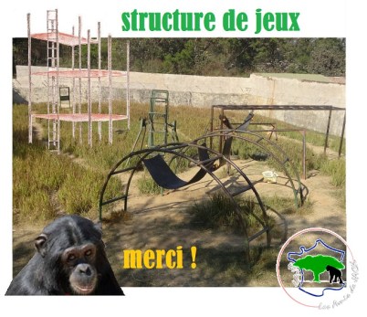 Nous sommes très heureux de pouvoir vous annoncer que la collecte de Noël créée en décembre dernier par notre association en France « Les Amis de JACK » vient d’être clôturée et que les chimpanzés du groupe de Chita pourront bientôt bénéficier du module de jeu essentiel pour développer leurs muscles & équilibres… Ce module leur servira également d’abri contre la pluie et le soleil brûlant!