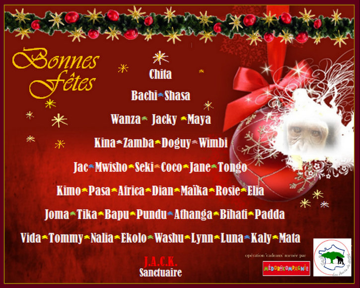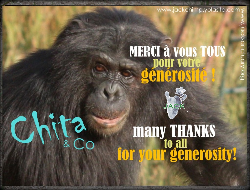 * une pensée et un immense MERCI plus particulièrement à une autre de nos marraines, Marie-Odile L. qui soutient le sanctuaire depuis très longtemps et qui, via sa générosité et son affection pour Maya et les autres chimpanzés de JACK, nous a permis de finaliser la collecte!