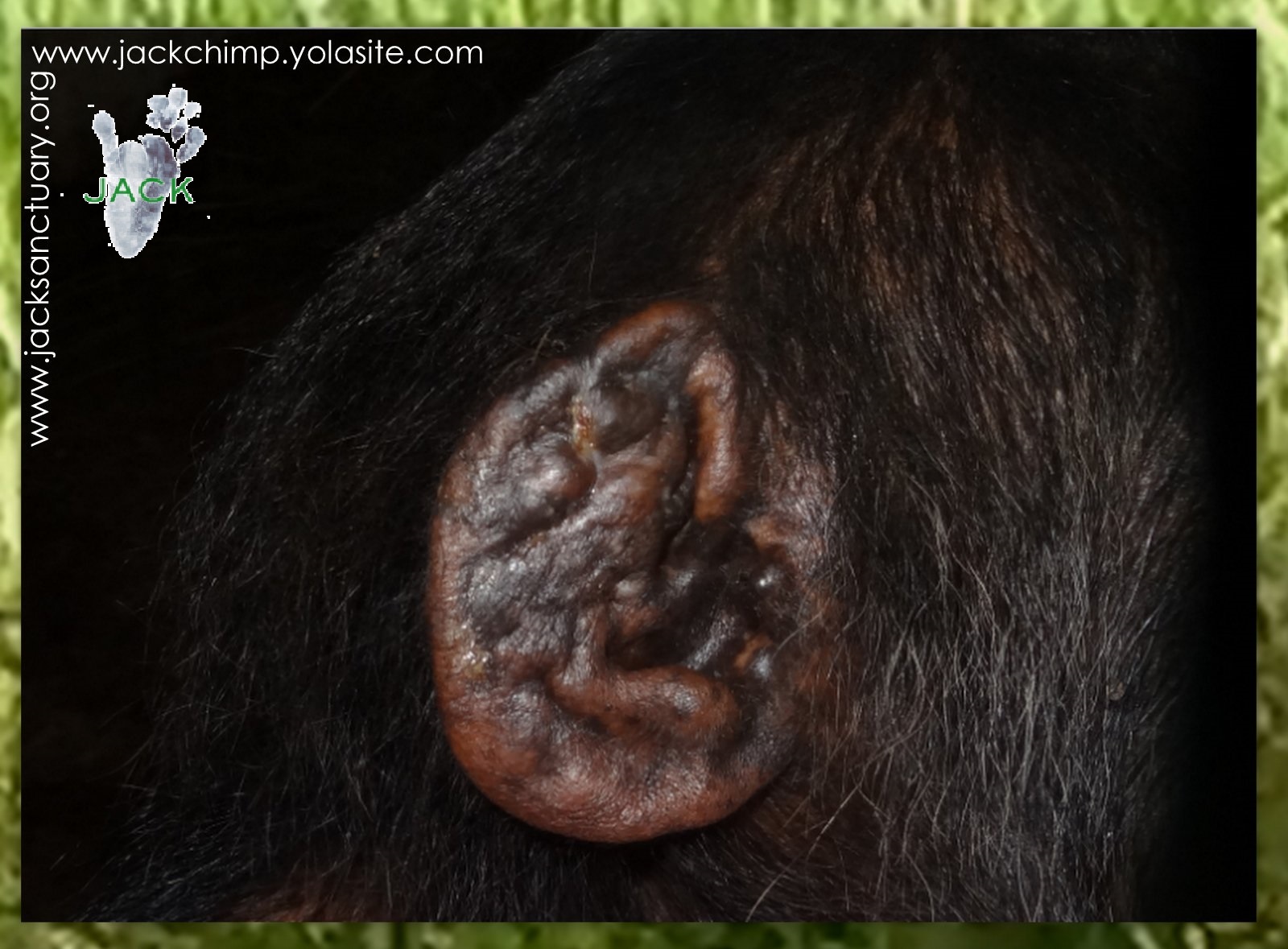 - l’oreille de Doguy est moins gonflée mais il reste encore un point de suture à l’arrière de l’oreille et nous préférons encore garder Doguy isolé le temps que le fil tombe car, si ce sont ses compagnons qui l’enlèvent, ils risquent de trop y toucher et de causer des dégâts!