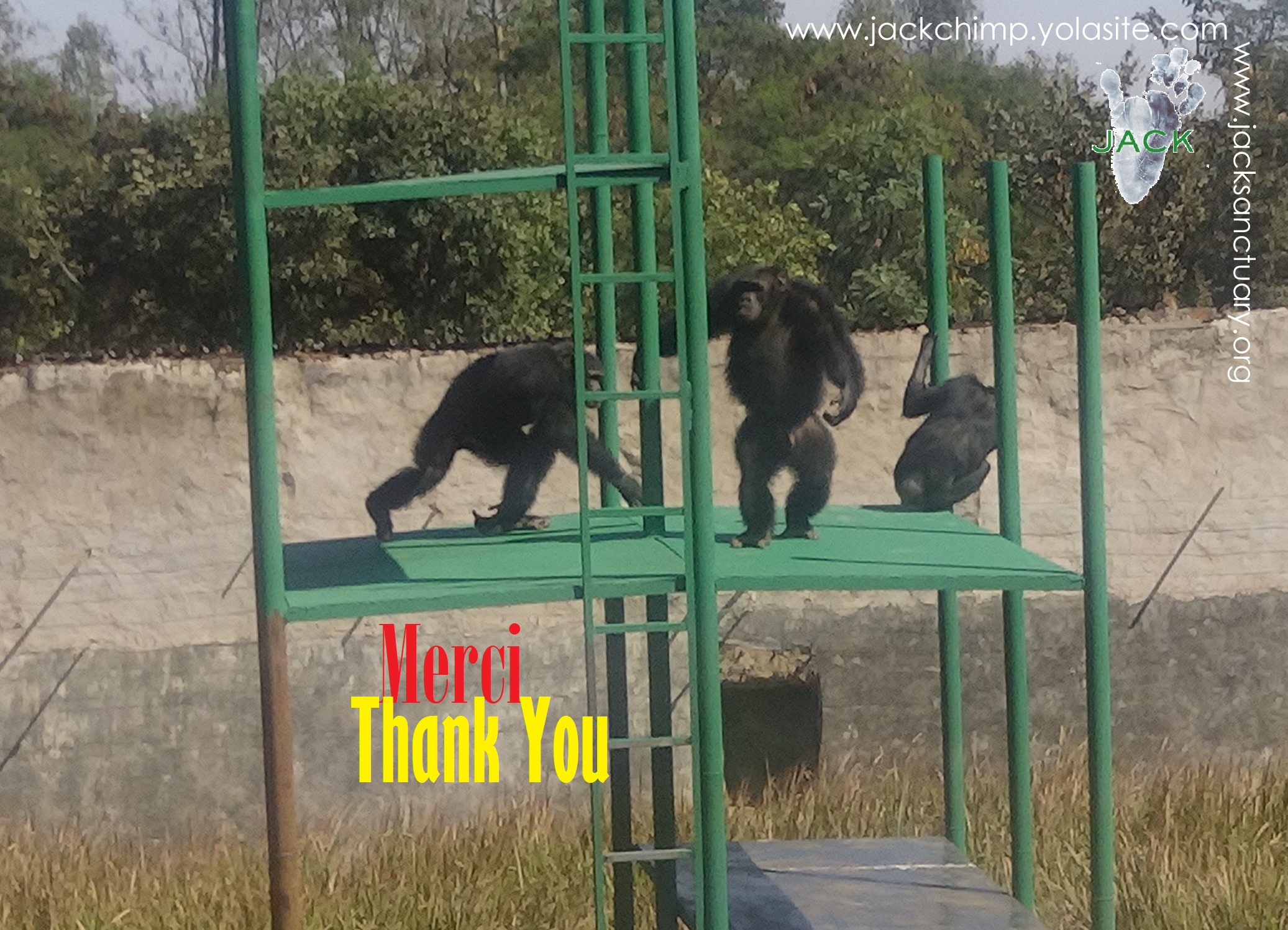 Nous voici au troisième et dernier jour de l’élaboration de la structure de jeu pour le groupe de Chita et Mwisho. Hier, le peintre n’a pas pu terminer de couvrir la dernière plateforme d’antirouille, mais cela a été fait en fin de journée du 3ème jour, morsque les chimpanés sont rentrés dans les quartiers de nuit pour leur ultime repas de la journée.