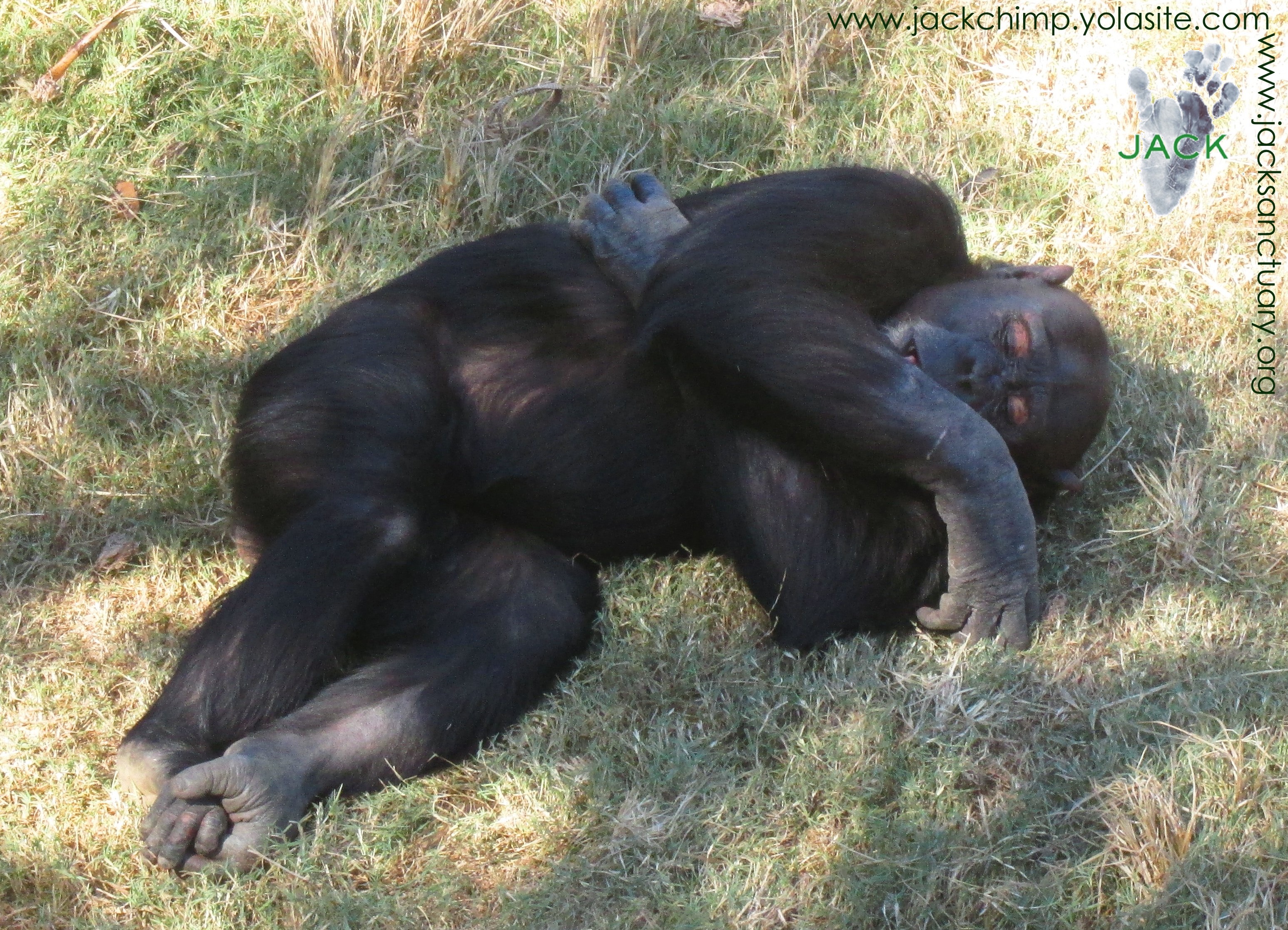 UN JOUR, UNE IMAGE – Voyez-vous les paupières rosâtres de Wimbi? Non, ce n’est pas du maquillage ni une maladie quelle conque… Les chimpanzés que nous encadrons (les chimpanzés de l’Est) est une sous-espèce différente de celle de l’Afrique de l’Ouest. Les chimpanzés d’Afrique Centrale naissent le visage clair et ont celui-ci qui fonce en atteignant l’âge adulte…Certains ados ont déjà la face foncée car leur épiderme noircit au soleil; oui, les chimpanzés peuvent prendre des coups de soleil et bronzer! Dans le cas de Wimbi (pas encore adulte!): quand il est à l’extérieur, il a les yeux ouverts et donc ses paupières ne sont pas bronzées.