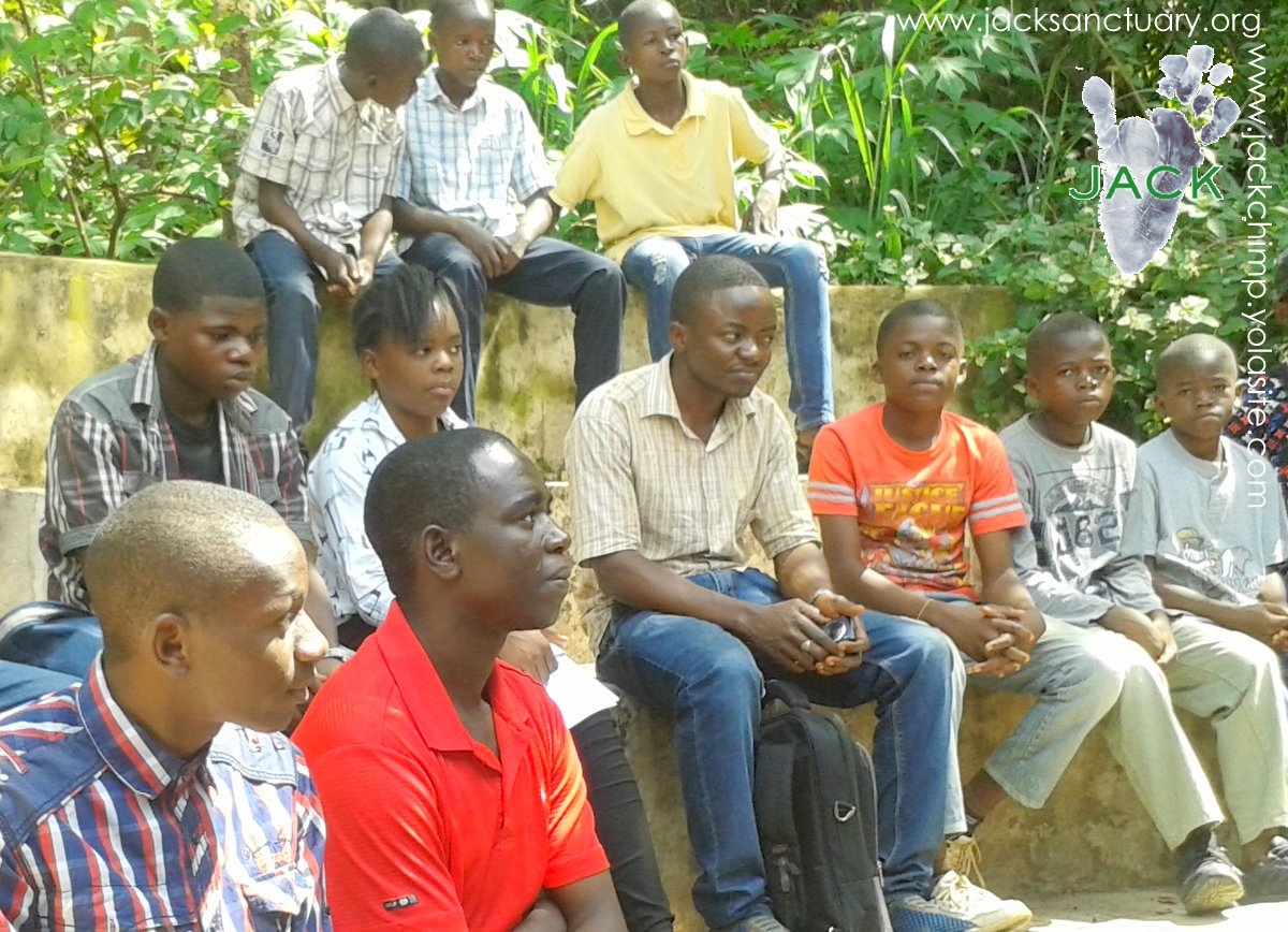 Tout le travail s’est fait dans la joie et la bonne humeur. Et l’ensemble de nos invités était très motivé à remettre cela! Une séance éducative sur les chimpanzés et leur Conservation leur sera d’ailleurs consacrée très bientôt! C’est un réel plaisir de travailler avec une équipe comme celle-ci; ces jeunes sont de réels ambassadeurs pour la Cause des grands singes mais pour la Conservation de la Nature en général puisqu’ils ont le pouvoir de toucher et de sensibiliser leur entourage!