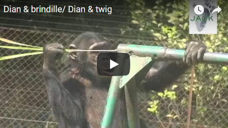 DIAN & LA BRINDILLE – malgré la dispute entre deux chimps, Dian reste concentrée pour trouver la meilleure brindille pour récupérer une friandise cachée
