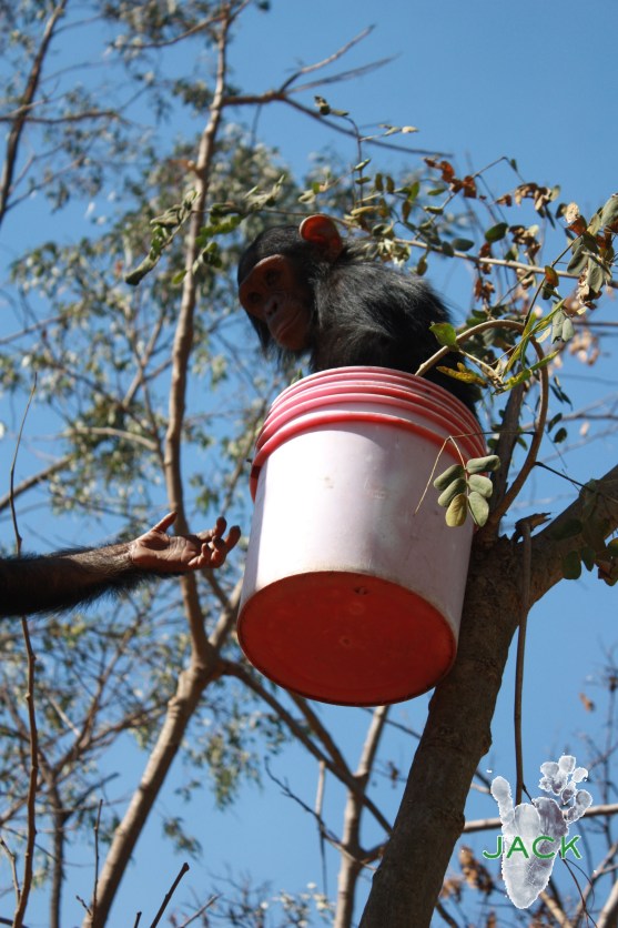 Chiper le seau du soigneur, s’y installer toujours plus haut dans les arbres afin d’observer tout ce qu’il se passe au sanctuaire a toujours été très amusant ainsi qu’une source de grand enrichissement pour nos pensionnaires!!!