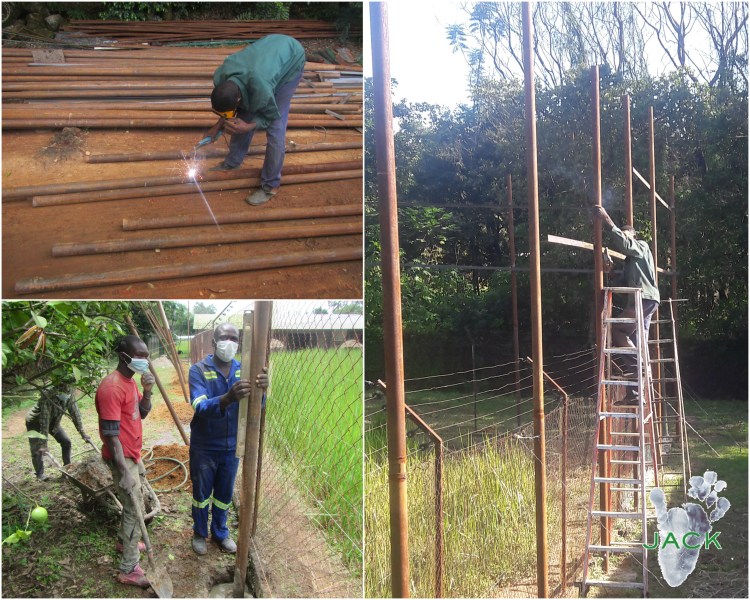Comme les travaux d’aménagements pour renforcer les enclos externes avaient déjà commencé en 2019 grâce à de généreux partenaires et sponsors de J.A.C.K., ces travaux ont continué grâce au soutien de la Réserve. Toute l’équipe d’artisans (soudeur & maçons) est toujours très active sur terrain en ce moment.