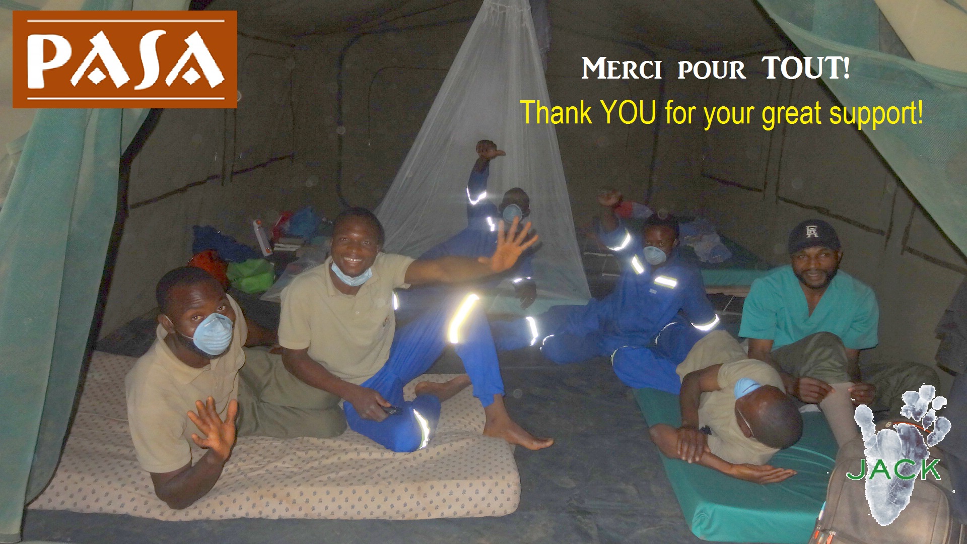 C’est ainsi que grâce aux fonds d’urgence du PASA, Franck & Roxane CHANTEREAU ont pu subvenir à l’équipement nécessaire pour installer le personnel sur terrain (matelas, moustiquaires, casseroles, seaux, etc.).