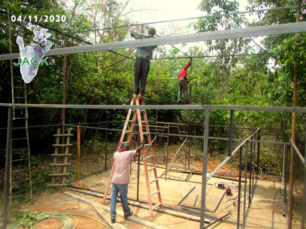 En effet, notre équipe d’artisans est à pied d’œuvre: depuis 10 jours, maçons, soudeur, plombier, etc. travaillent d’arrache-pied pour que les enclos soient prêts dès l’arrivée des primates prévue normalement la semaine prochaine! Voyez par vous-mêmes l’évolution des travaux sur le diaporama ci-dessous.