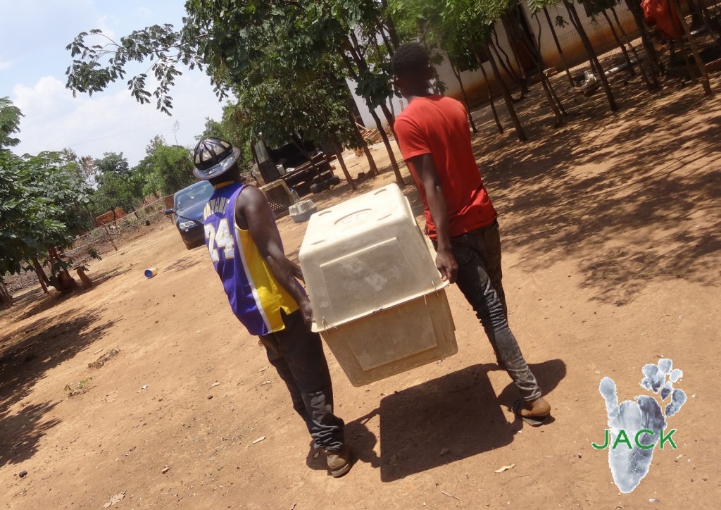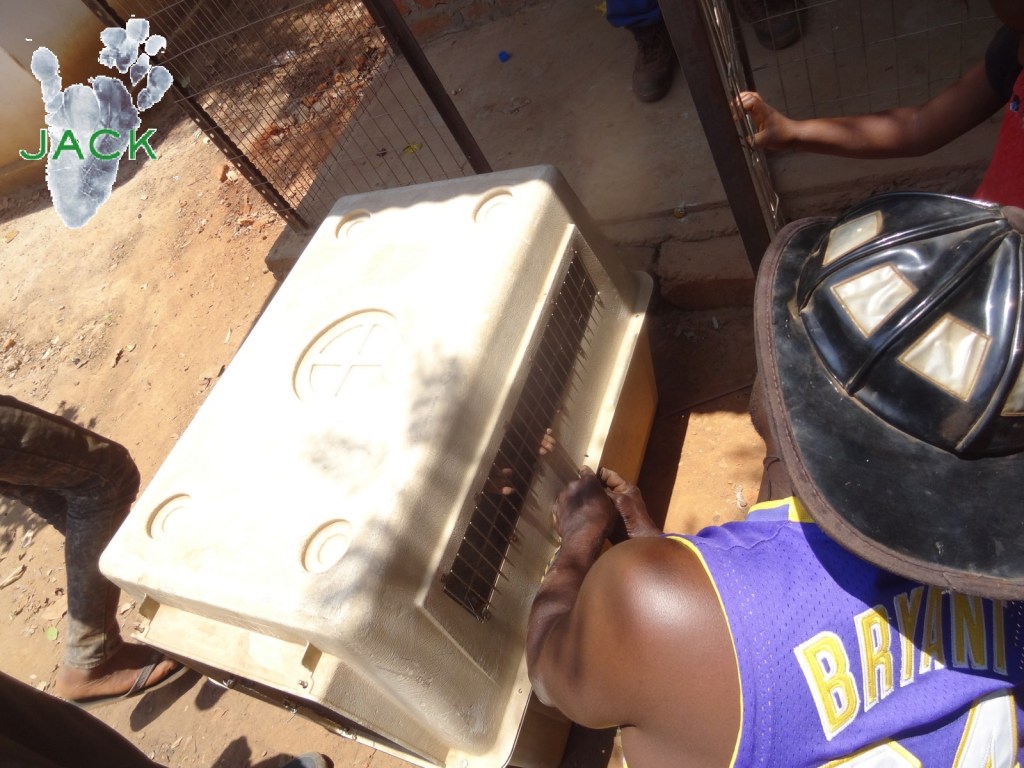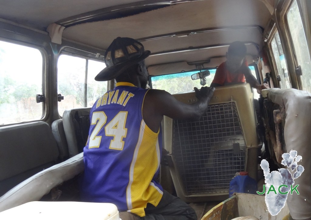 Les animaux ont été mis dans les cages de transport de J.A.C.K. dès que toutes les étapes légales étaient terminées. Une longue route de retour attendait toute l’équipe pour rejoindre Franck et Roxane à Lubumbashi.
