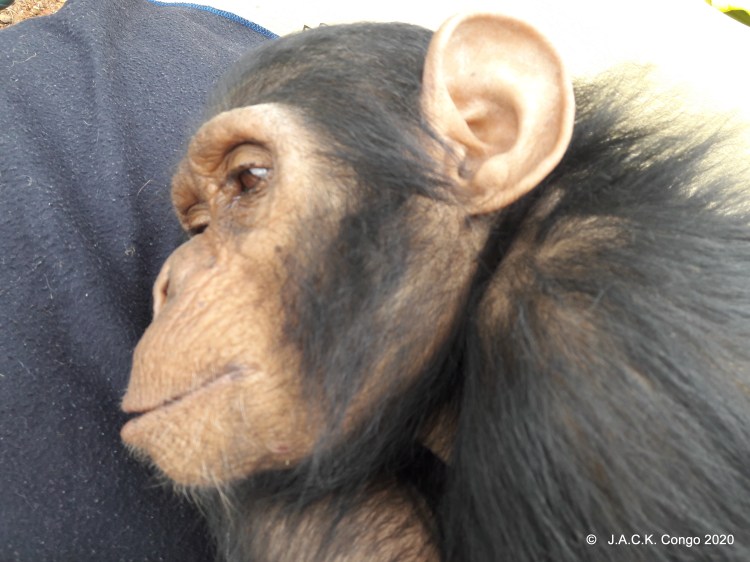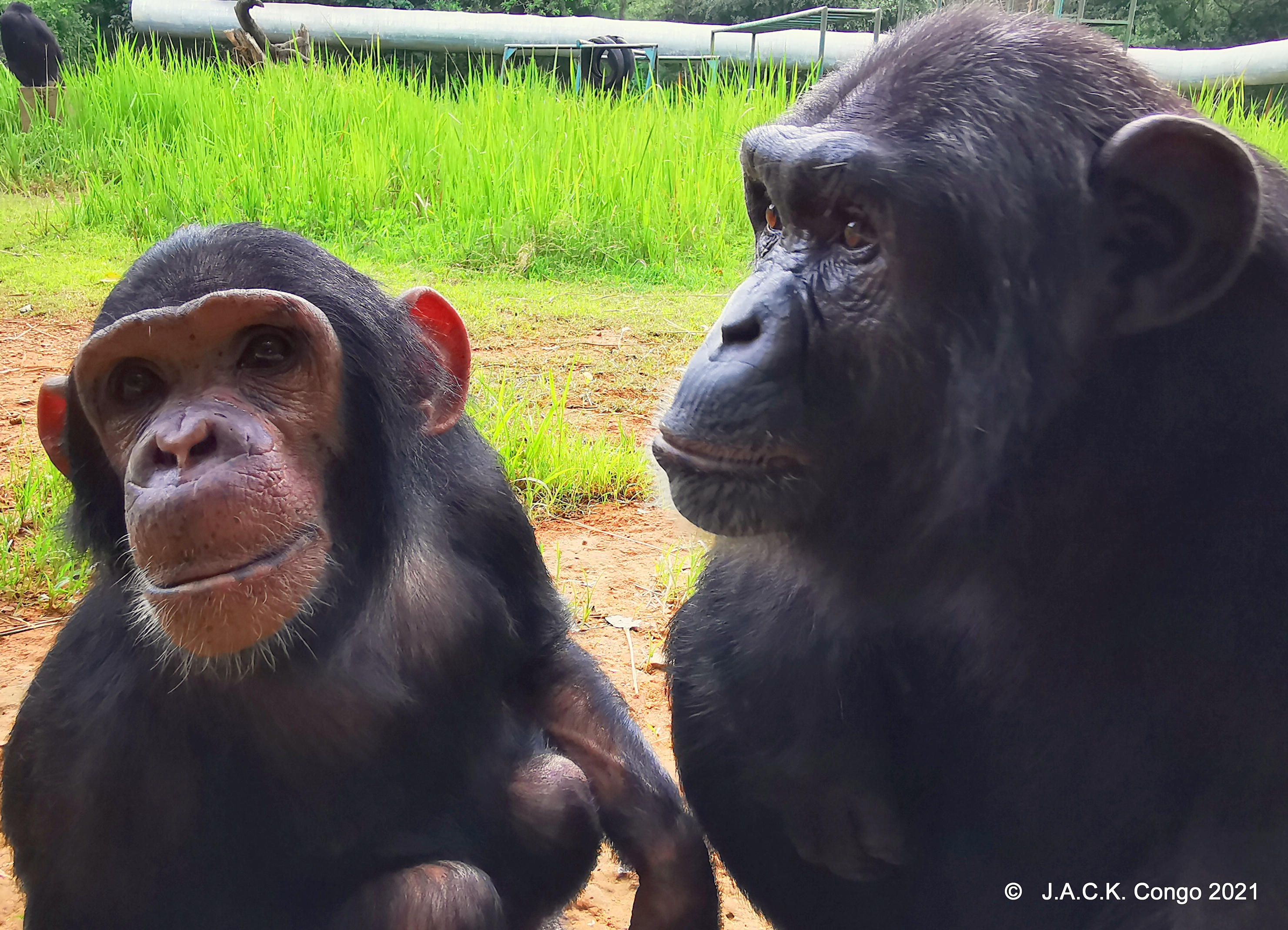Malheureusement, Zumba n’a jamais accepté le contact. Elle fuyait quand Luna voulait la toucher, l’enlacer, l’épouiller… Elle ne comprenait pas ce que Luna attendait d’elle. Petite Zumba avait très peur lorsqu’elle entendait les membres du groupe de Luna crier, jouer… C’était comme si Zumba vivait un stress permanent et qu’elle était perdue! Elle ne vocalisait jamais, ne produisait jamais de sons. Heureuse, triste, affamée… on ne l’entendait jamais comme si elle ne pouvait plus communiquer en langage chimpanzé. On en a déduit que la petite femelle avait mis loin dans sa mémoire le peu de culture chimpanzé qu’elle avait eue avant le massacre de son groupe et que le fait d’être ainsi trafiquée et ensuite détenue dans de terribles conditions l’avait traumatisée…