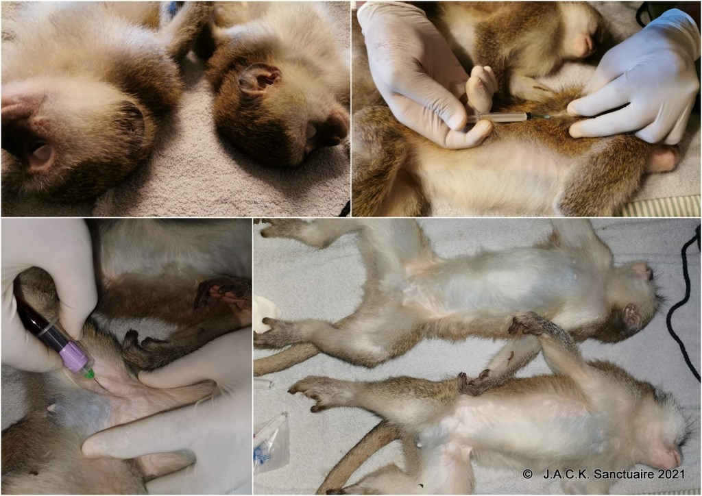 Il y a quelques jours, les deux vervets ont été anesthésiés pour faire quelques prélèvements et analyses.