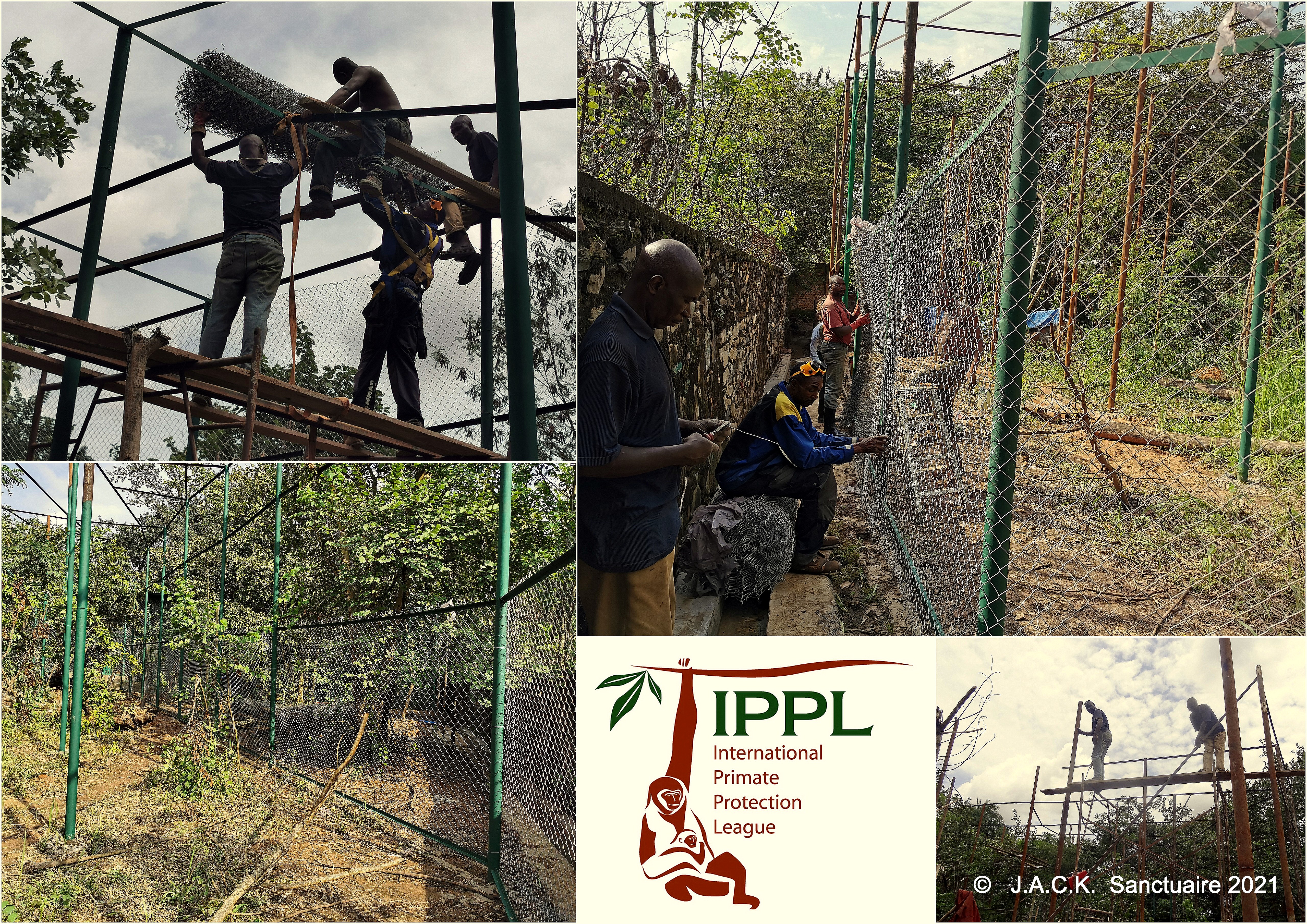 Il y a quelques mois, alors que nos Fondateurs travaillaient sur le rapatriement des primates congolais confisqués au Zimbabwe, le sanctuaire J.A.C.K. s’est vu octroyé une aide considérable de différents donateurs en vue de construire les structures nécessaires pour accueillir les nouveaux pensionnaires. IPPL, INTERNATIONAL PRIMATE PROTECTION LEAGUE , faisait partie des premiers partenaires à répondre favorablement à la demande d’aide urgente de J.A.C.K.