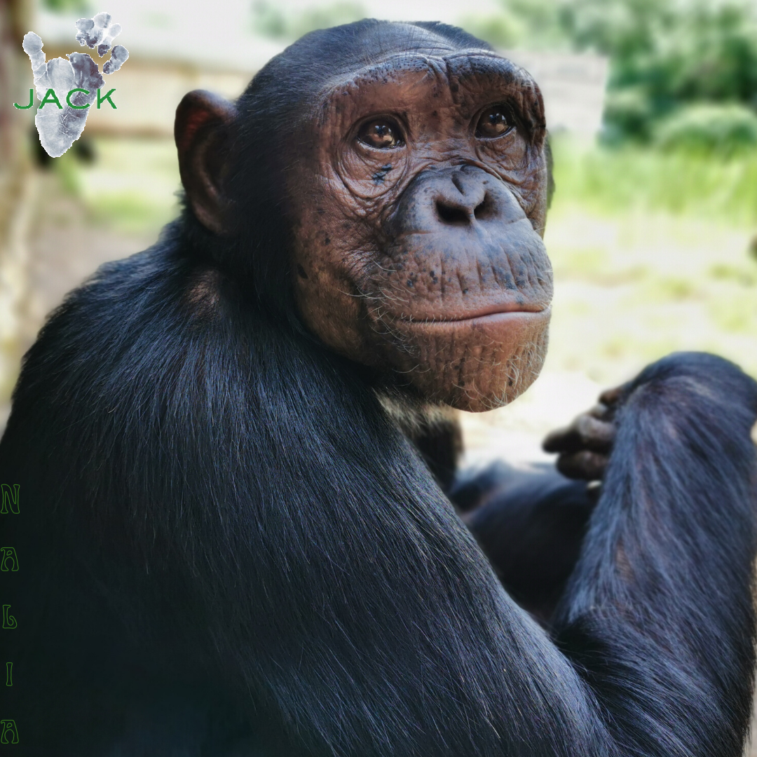 NALIA est une chimpanzée de l’Ouest: son visage clair de bébé deviendra tout foncé à l’âge adulte !Elle a d’ailleurs des taches sur son visages…