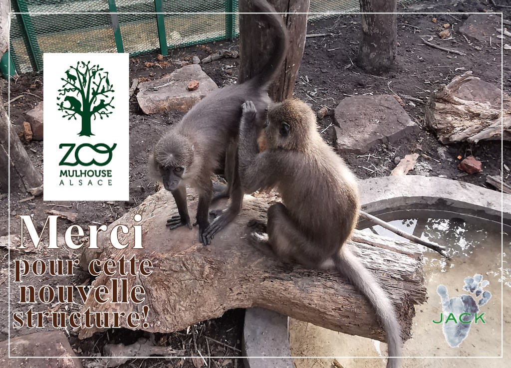 C’est ainsi que la Direction du Zoo de Mulhouse, via son association LES AMIS DU ZOO DE MULHOUSE, a accepté de faire partie de ce plus grand sauvetage d’Afrique de primates en contribuant généreusement à la construction de 2 structures indispensables au bien-être de jeunes Mangabeys agiles.