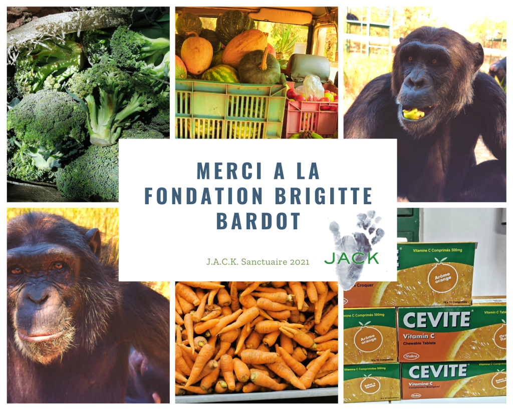 TOUT GRAND MERCI ENCORE A LA FONDATION BRIGITTE BARDOT, SA DIRECTION, SON EQUIPE & SES DONATEURS POUR LEUR AIDE PRECIEUSE EN FAVEUR DES 35 CHIMPANZES. VOTRE GENEROSITE, VOTRE AFFECTION ET VOTRE CONFIANCE NOUS PERMETTENT DE FAIRE DE GRANDES CHOSES POUR CES GRANDS SINGES!