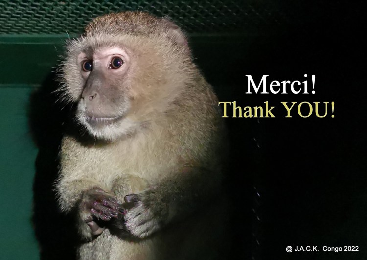 Grand MERCI à l’ICCN ainsi qu’à l’Amie donatrice de J.A.C.K. qui ont permis ce sauvetage. SYLLIO est en quarantaine et rejoindra un groupe de son espèce dans environ 90 jours si tout va bien!