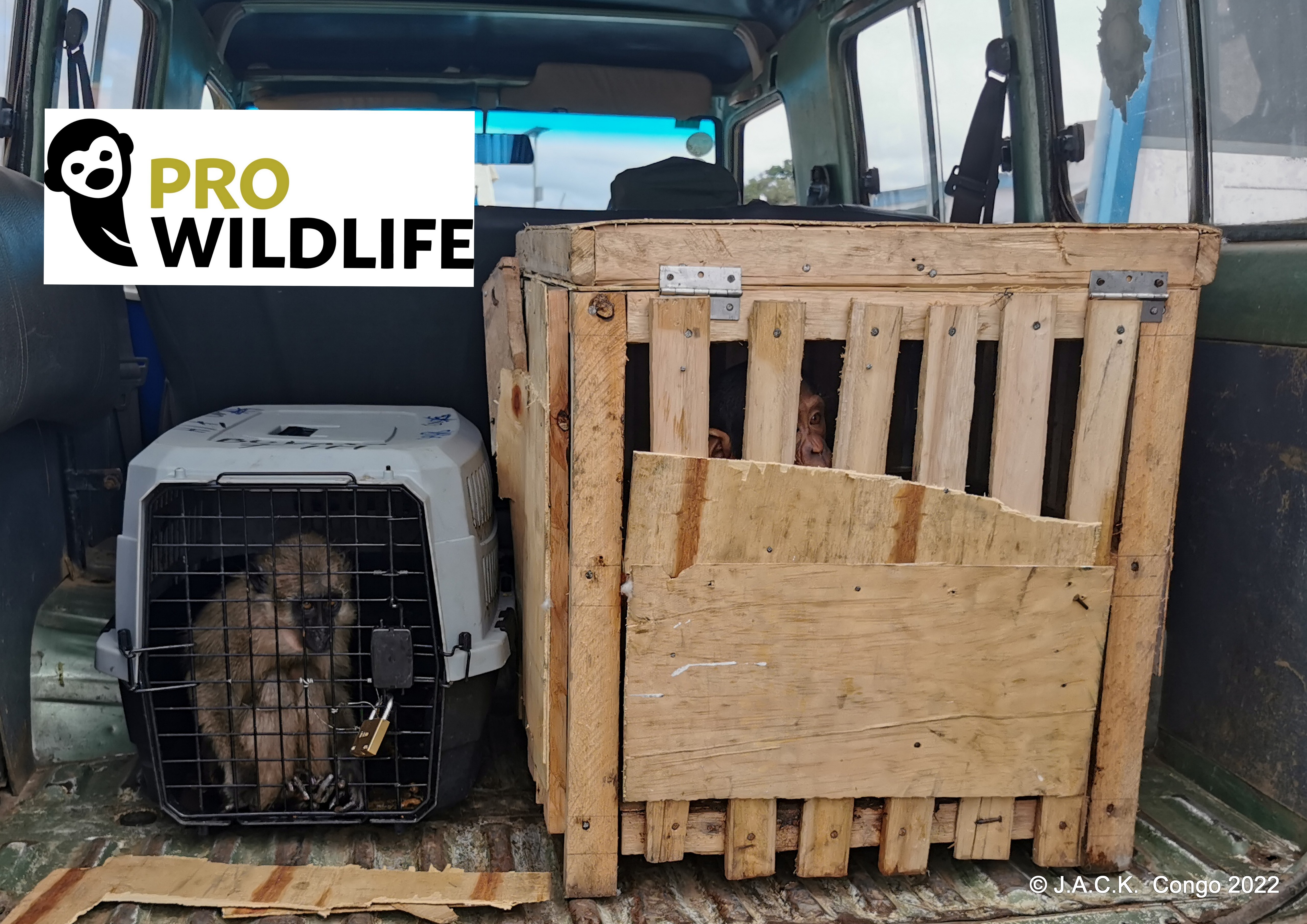 Les deux primates ont été confisqués le 25 avril et ont été transférés au Centre de Réhabilitation pour Primates à Lubumbashi le 28 avril. Le transfert n’a pu se faire sans le précieux soutien de PRO WILDLIFE et d’un donateur qui désire rester anonyme.