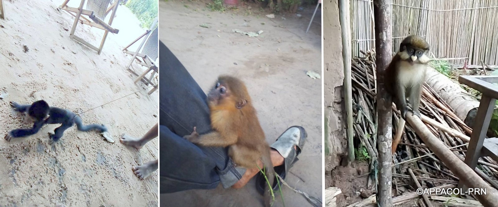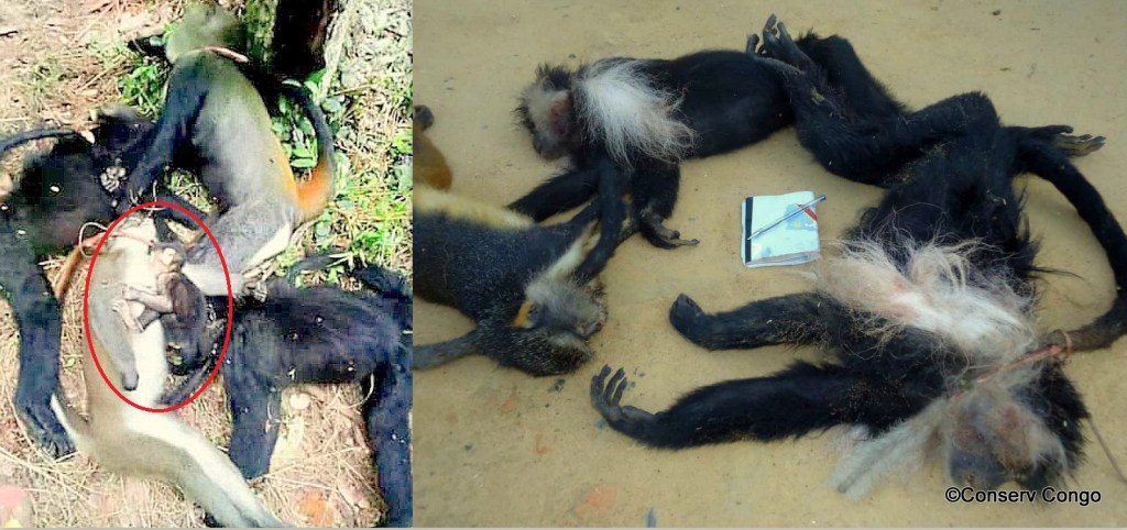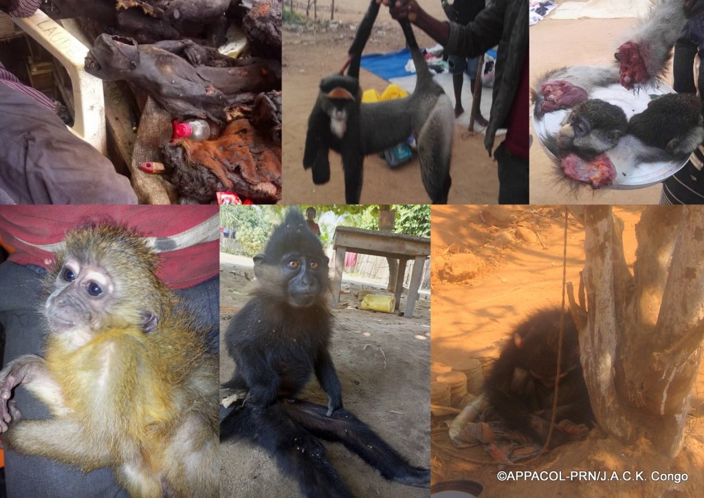 En République Démocratique du Congo, les primates sont l’une des espèces les plus touchées par ce trafic. Parmi eux les grands singes comme le gorille, le chimpanzé, le bonobo et les petits singes comme les cercopithèques et les mangabeys (certains sont endémiques à la RD Congo).