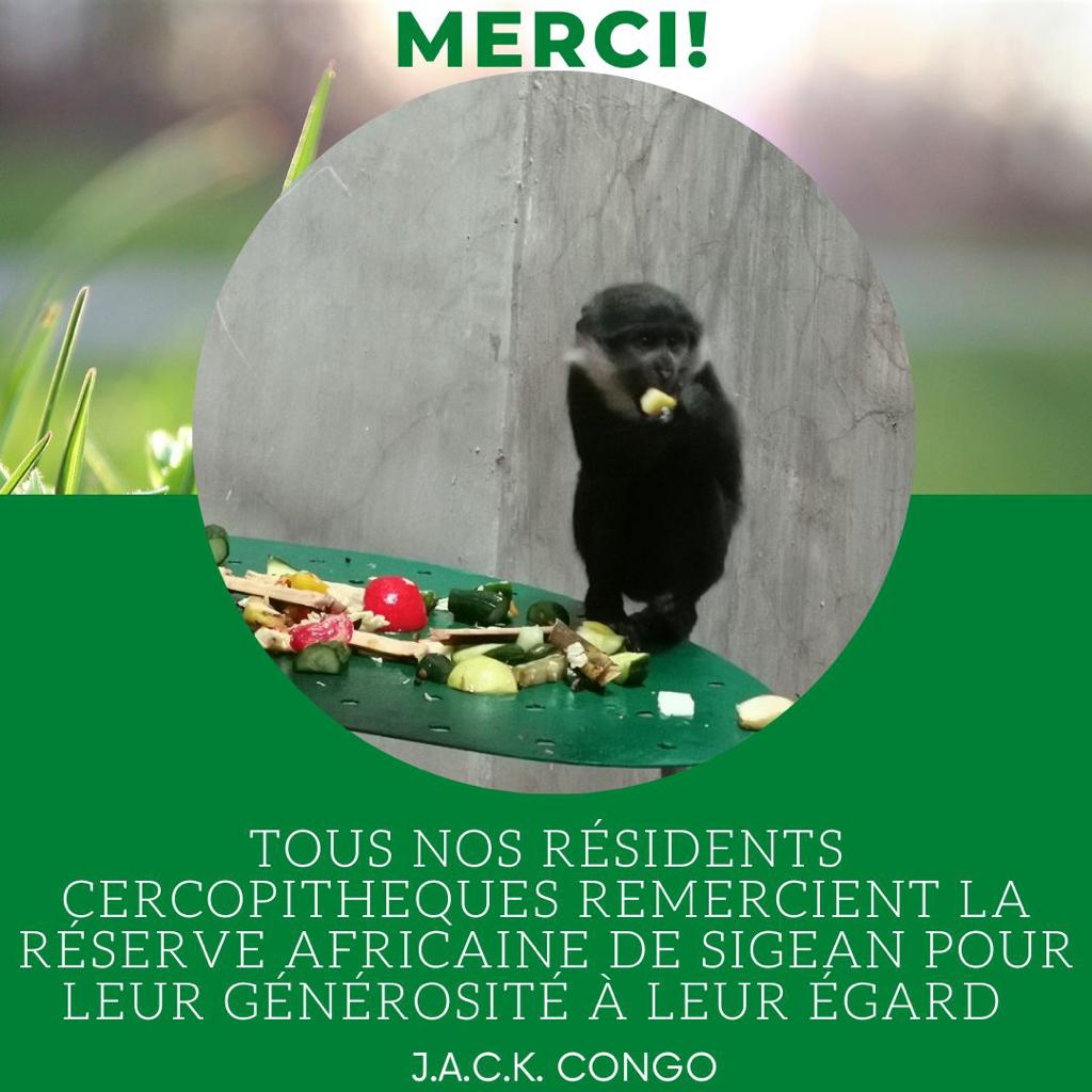 Au nom de tous nos résidents cercopithèques, nous tenons à remercier la Réserve Africaine de Sigean, sa Direction, son équipe ainsi que tous ses donateurs pour leur constante générosité à leur égard.