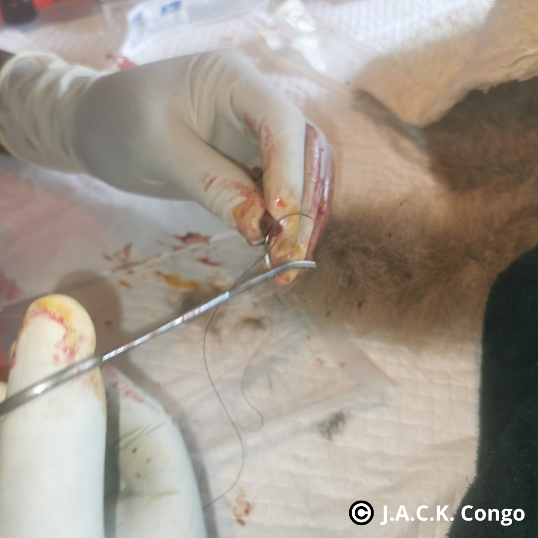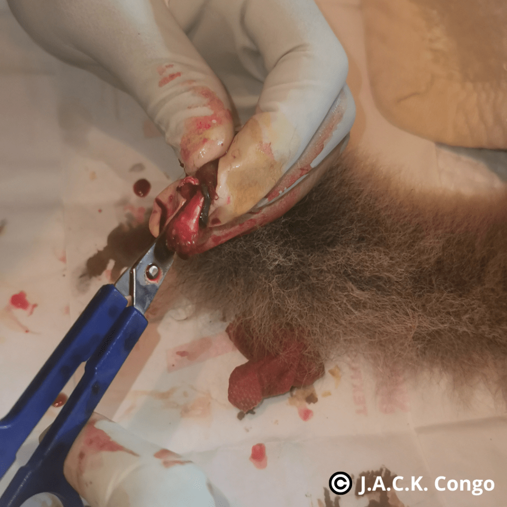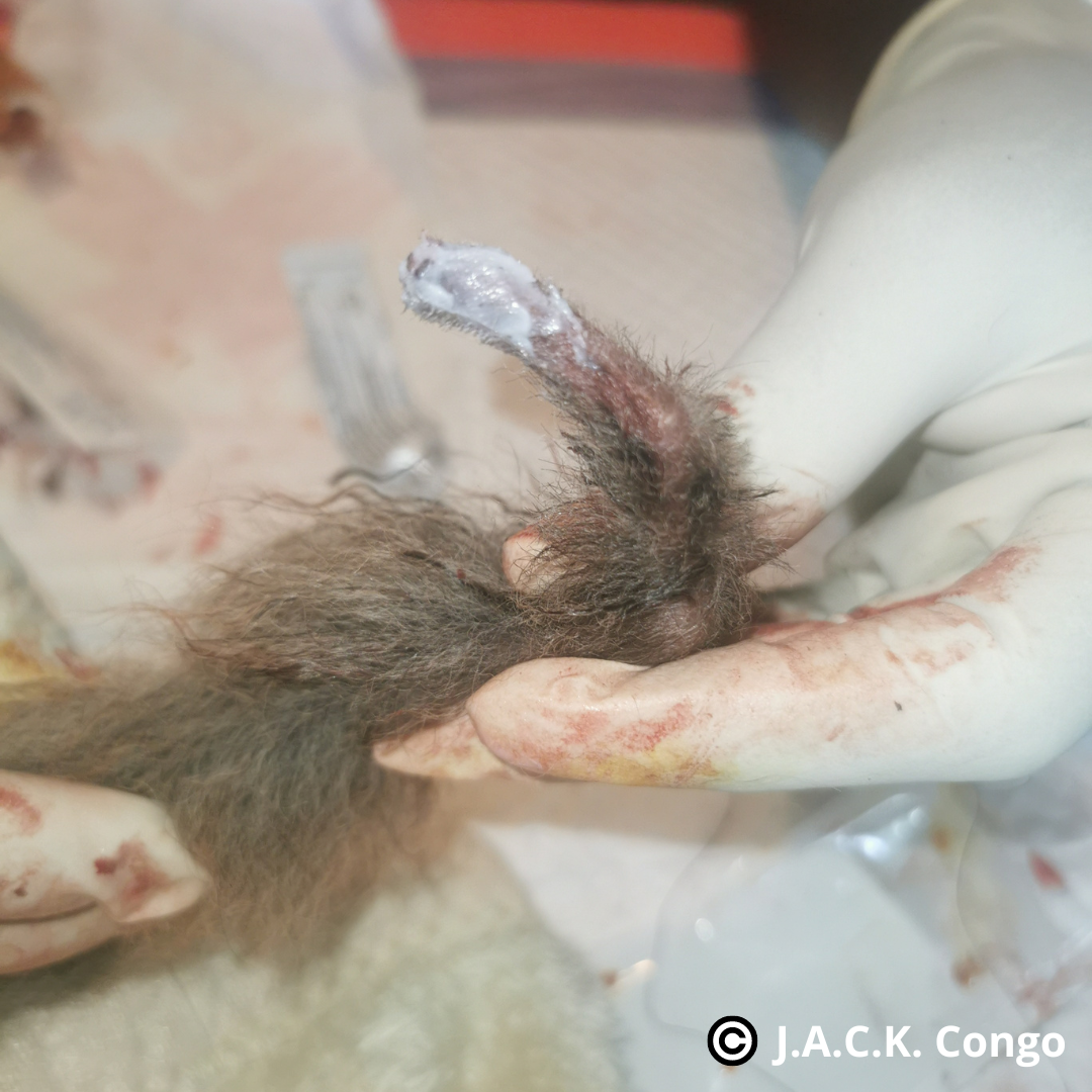 Avec la circulation sanguine ainsi coupée au niveau de la queue, celle-ci a fini par tomber. Une rapide intervention chirurgicale a eu lieu pour retirer nettoyer toute la partie endommagée et pour la suturer.