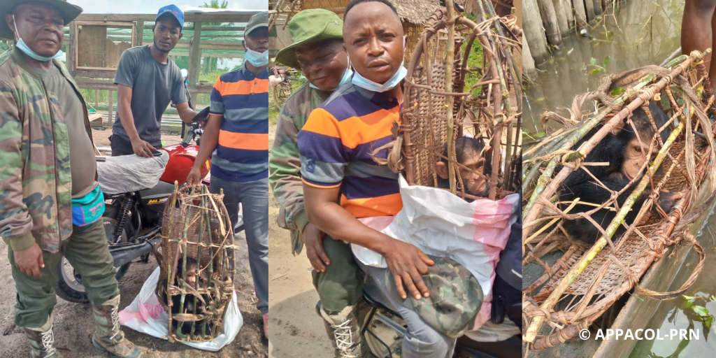 Les chimpanzés sont intégralement protégés sur le papier depuis 1982 par les lois en vigueur dans notre pays. Force est de constater que sur le terrain la réalité est toute autre, des familles entières sont décimées soit pour être manger (Commerce illégal de viande de brousse), soit pour leur voler leurs bébés afin de les vendre frauduleusement au Moyen Orient et en Asie pour alimenter l’industrie des animaux exotiques de compagnie.