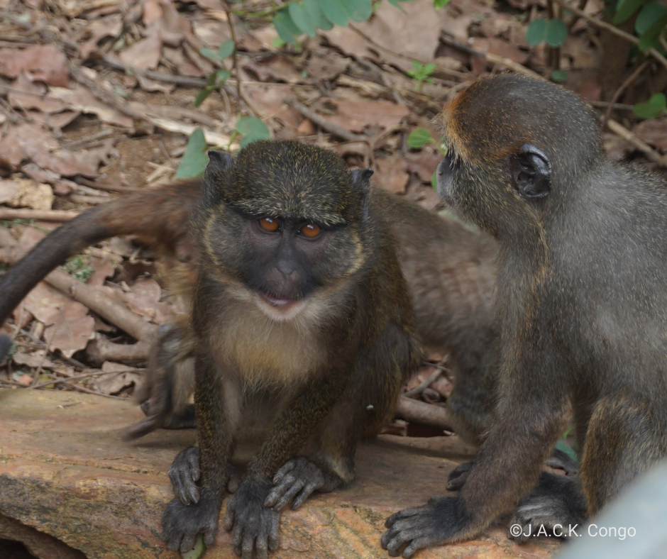 Les singes des marais (Allenopithecus nigroviridis) vivaient dans un groupe avec d’autres primates, mais à mesure qu’ils devenaient plus âgés et plus forts, les autres espèces devenaient plus territoriales et commençaient à donner du fil à retordre aux singes des marais. Depuis, ces derniers, dont un bébé, vivent au domicile privé des fondateurs de l’ONG Congolaise. Mera, Allen et Leke sont trois jeunes singes des marais qui attendent avec impatience des installations répondant à leurs besoins.