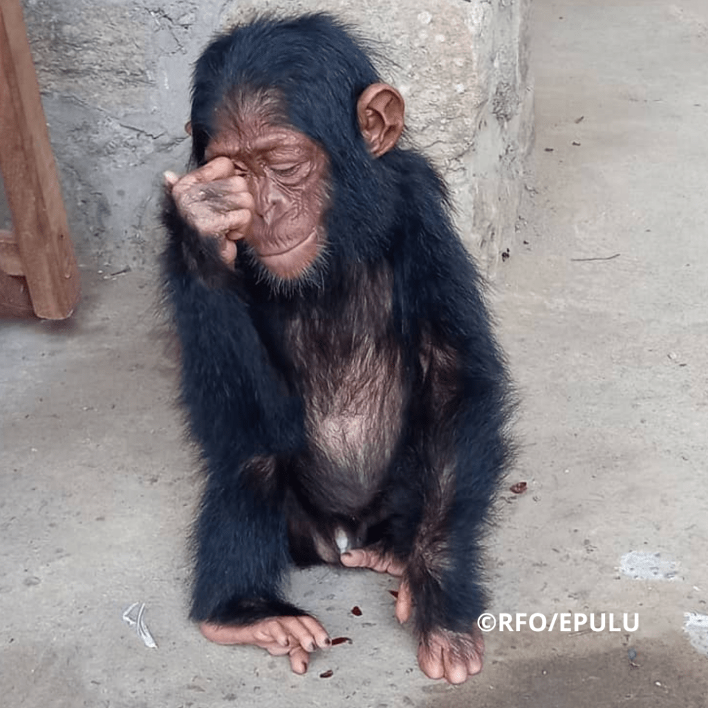 Après un voyage éprouvant, le bébé chimpanzé était confisqué et transférer à Epulu, au sein de la réserve de la faune à Okapi (RFO). Cependant, son état de santé était préoccupant. Il était déshydraté et souffrait de problèmes intestinaux. Grâce aux soins prodigués par notre équipe dévouée, le petit chimpanzé a commencé à retrouver des forces et à s’épanouir.
