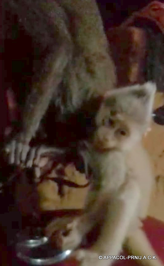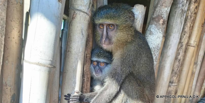 Quand les autorités sont arrivées pour confisquer les deux individus, le bébé Mangabey noir venait de périr. Seule Kavu a été acheminée à Lodja et confiée par les autorités à notre partenaire APPACOL-PRN.