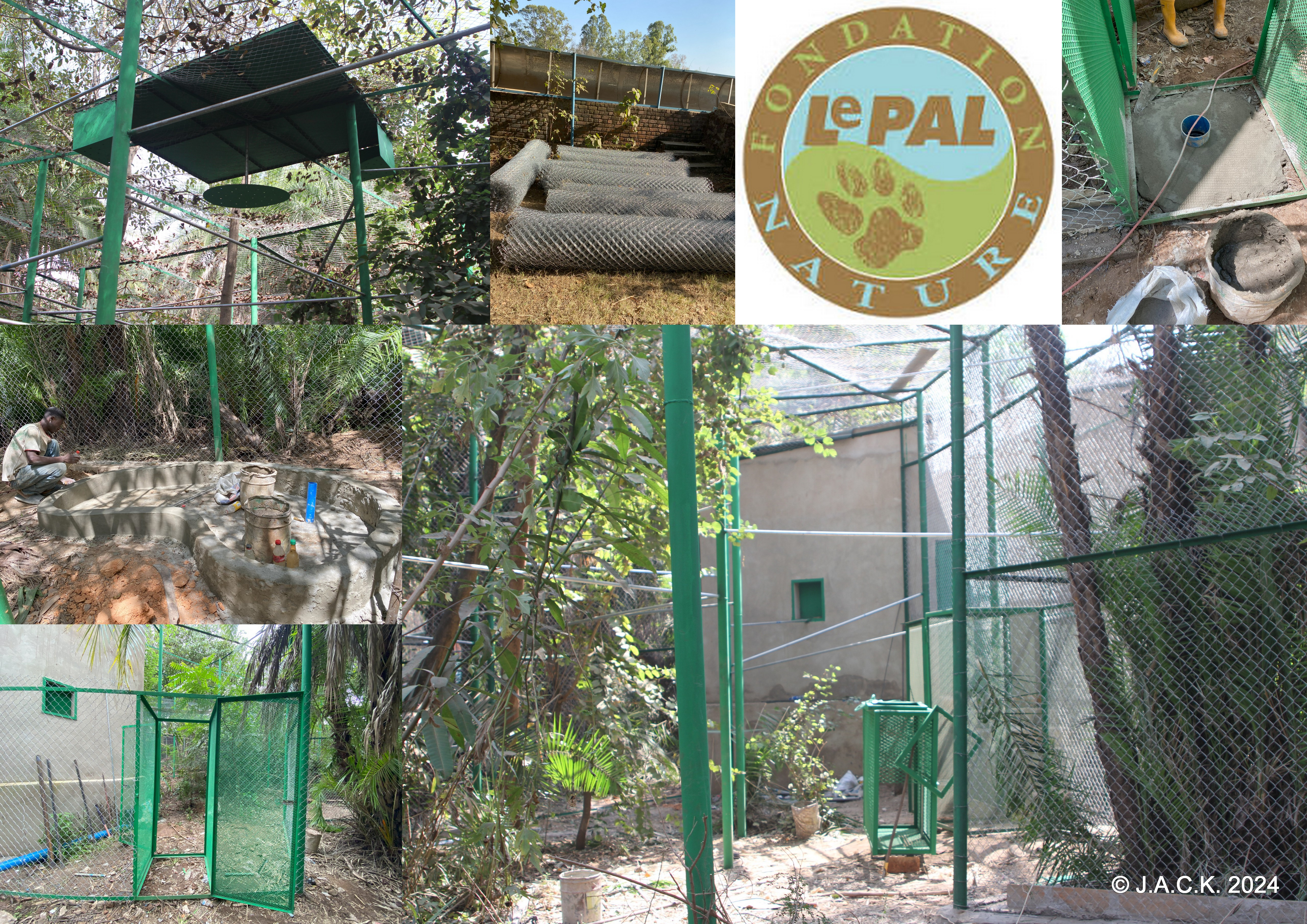 Construction de volières adaptées : LE PAL FONDATION a aidé à aménager un grand enclos extérieur boisé destiné aux mangabeys noirs et aux mangabeys agiles. Ces installations offrent aux primates rescapés du commerce d’espèces menacées (dont ceux de la saisie effectuée au Togo en décembre 2023) un environnement naturel et enrichissant pour leur réhabilitation.