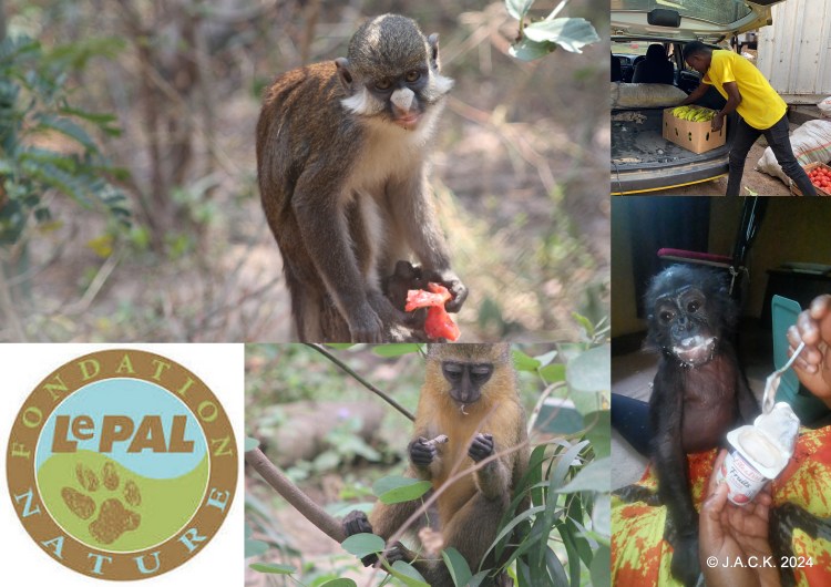 Soutien alimentaire pour 14 primates : En août 2024, 16 primates ont été secourus des mains de trafiquants à l’aide des autorités de la province du Sankuru et de notre partenaire, APPACOL-PRN, et transférés à J.A.C.K.. LE PAL FONDATION a contribué à couvrir leurs besoins alimentaires pendant six mois, assurant ainsi leur bien-être et leur rétablissement. Pour rappel, ces individus sont arrachés de leur famille par des braconniers afin d’alimenter le trafic de viande de brousse et le commerce illégal d’animaux exotiques de compagnie.