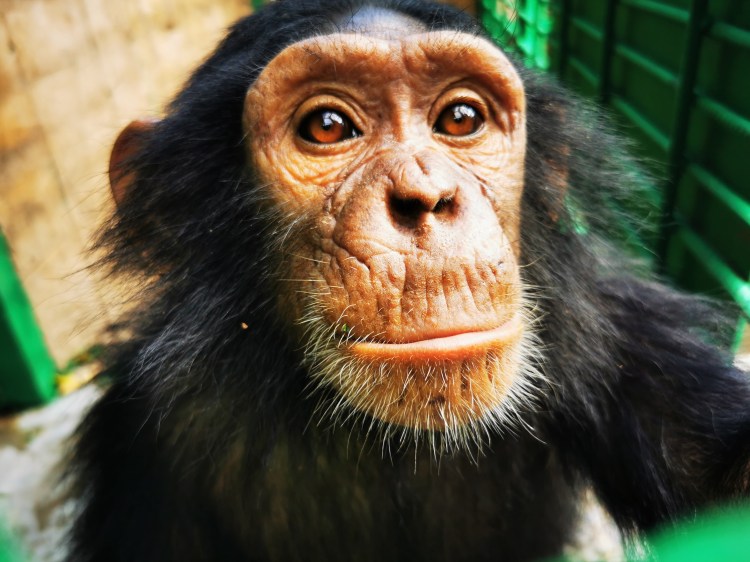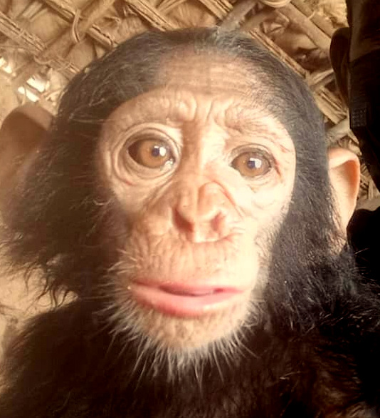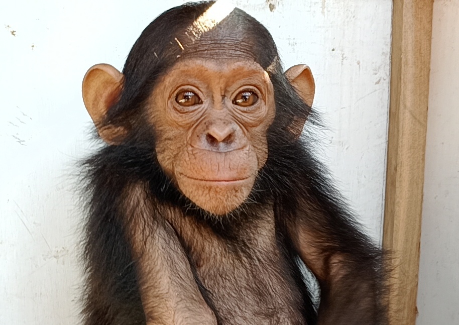 En janvier 2022, César a été récupéré sur un marché à LIKATI (province de Bas-Uélé) par Mr Armand et tout a été mis en œuvre pour amener le bébé chimpanzé à Lubumbashi, au sanctuaire.