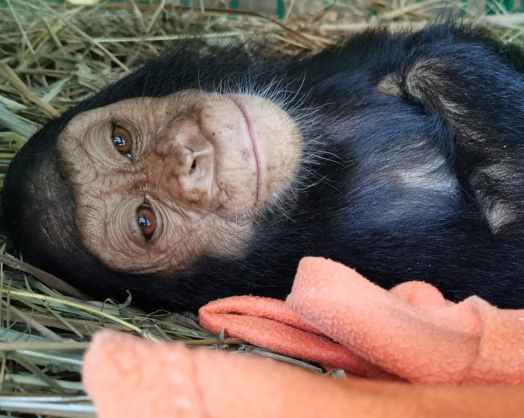 Fwa est un bébé chimpanzé qui avait peu de chance de survivre. Avec une petite santé et un mental fort atteint à cause du massacre de sa maman et de son groupe, Fwa a donné pas mal de soucis aux fondateurs et à l’équipe en arrivant à J.A.C.K. fin septembre 2023.
