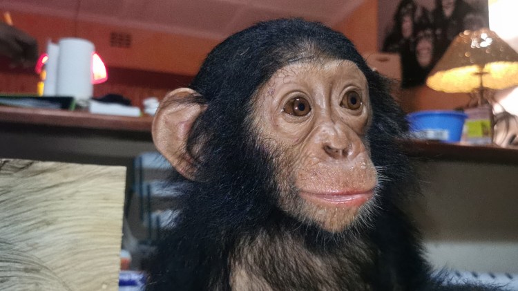 Zumba a été confisquée en février 2020; ce sont les voisins qui ont dénoncé le « propriétaire » car la petite chimp s’échappait tout le temps!