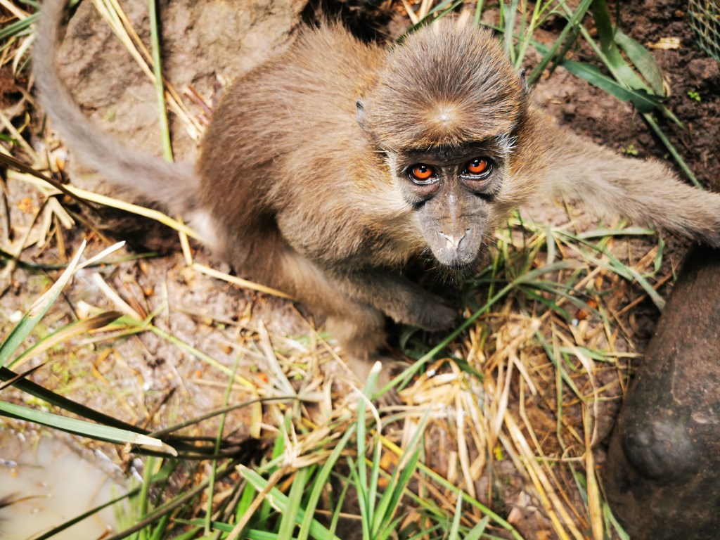 Détenu à Likasi, une ville à 120kms de J.A.C.K., ce jeune Malbrouck (Chlorocebus cynosuros)a été saisi par l’ICCN (Institut Congolais pour la Conservation de la Nature) alors que le propriétaire tentait de le vendre en rue. Tino est arrivé à J.A.C.K. le 3 mai 2021