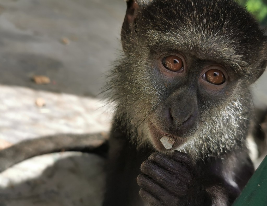 Turi est un Allochrocebus de LHoest, une espèce vulnérable en RD Congo. Cette femelle a été sauvée dans la région de l’Ituri, dans l’Est de la RDC, et est arrivée à J.A.C.K. en mars 2022. Sa maman a été tuée et elle était un animal domestique chez les villageois qui ont consommé sa maman. Turi vit aujourd’hui dans un groupe de primates de son espèce.