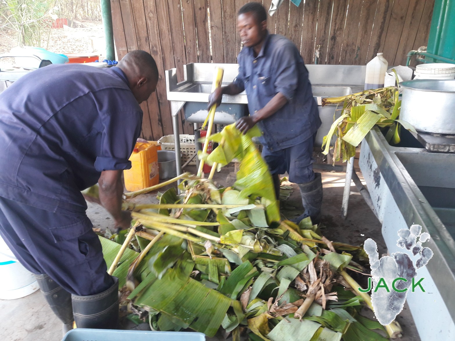 Grâce à Mare-Lo, une amie de Lubumbashi, nos résidents ont été bien gâtés puisque 132kgs de bananiers (troncs & feuilles) ont été coupés et offerts en guise d’enrichissement aux chimpanzés! Tous nos ‘poilus’ étaient super contents!! 1000 mercis encore, Mare-Lo, pour ton grand coeur!