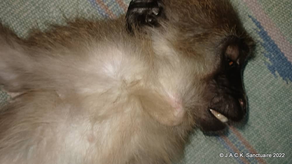 River, le petit mâle Mangabey agile transféré à J.A.C.K. fin avril dernier (voir l’article sur le lien suivant : https://jackchimpscongo.org/2022/05/06/confiscation-insolite-dans-un-ecolodge/), est arrivé avec une capsule en plastique dans sa bouche. Ces primates ont des abajoues comme les écureuils où ils stockent de la nourriture et, l’abajoue droite était anormalement gonflée en permanence. C’est en anesthésiantLireLire la suite « Une capsule retirée de la bouche de River »
