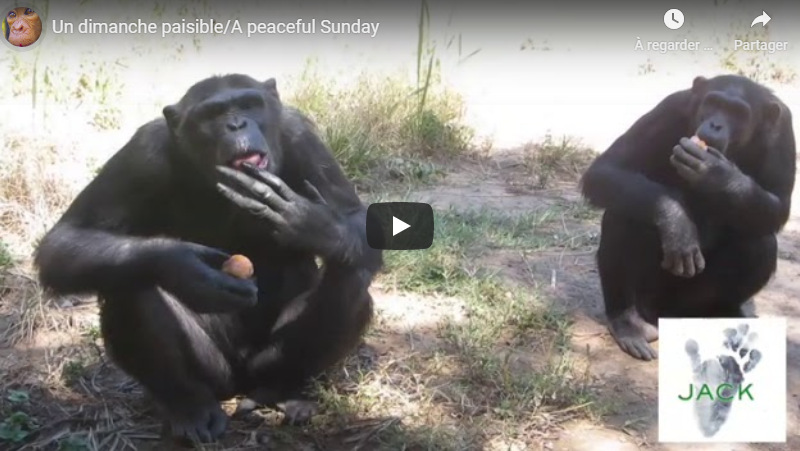 JOURNEE MONDIALE DU CHIMPANZÉ – La journée d’un chimpanzé à J.A.C.K. Les chimpanzés aiment la routine car cela les rassure! C’est ainsi que chaque jour, de 6h à 18h toute l’équipe du sanctuaire s’organise pour LEUR donner ce dont ILS ont besoin. La journée est rythmée entre l’enrichissement, les jeux, les repas, la sieste… https://youtu.be/FCSaJZjW1Kk