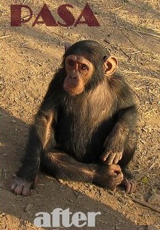Quand on sait qu’en moyenne 10 individus sont sacrifiés pour sortir 1 jeune primate de la forêt en vue de le vendre, 3 jeunes chimpanzés arrivant à Lubumbashi représentaient dès lors mensuellement 30 primates péris, soit environ 360 individus exterminés par an rien que pour répondre à la demande du trafic illégal d’animaux exotiques de compagnie. Un vrai massacre!